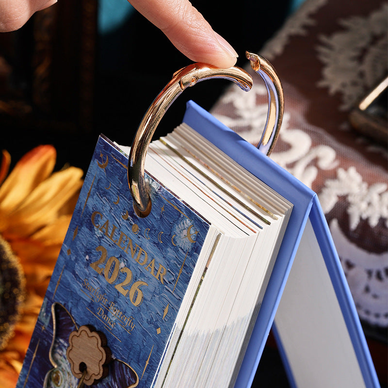 - 🦋 Handy Butterfly Pendant Accent — A tasteful little pendant hangs from the flip-top, giving the calendar an artisanal, giftable quality. It’s a charming accent that also makes the calendar perfect as a thoughtful present for colleagues, booklovers, or art fans.
