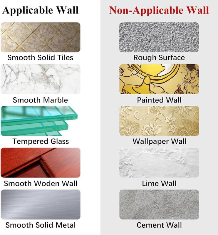【Easy to install】Self-adhesive installation, attach it to the product without any traces, tear off the protective film, align the position and stick it where you need to install it, tighten the nut and wait for 24 hours before use. Note: Adhesive installation is suitable for smooth hard surfaces such as tiles, smooth marble, glass, metal and solid wood.
