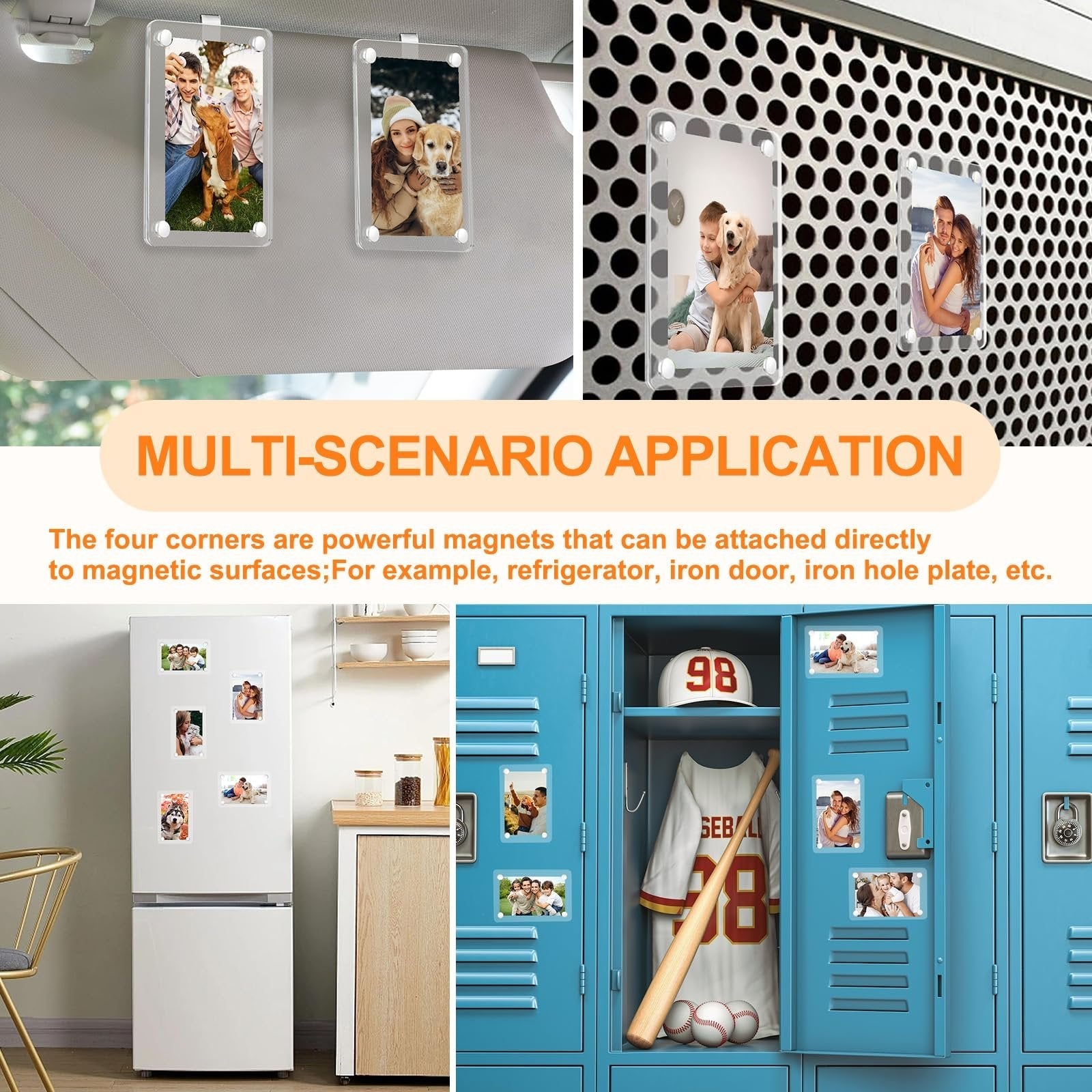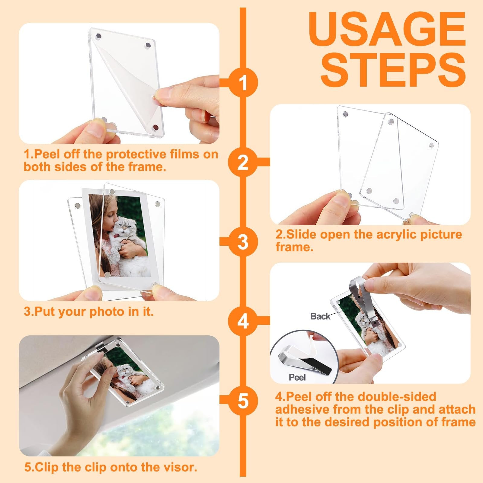 No hassle, no tools required! Just peel, stick, and insert your photo between two magnetic panels. The adhesive clip keeps it secure, even on bumpy roads.