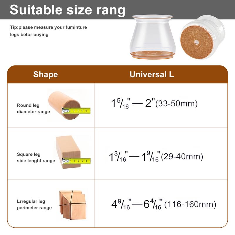 - Suitable Chair Leg Sizes: Round: 2.3-3.3cm, Square: 2.0-2.8cm