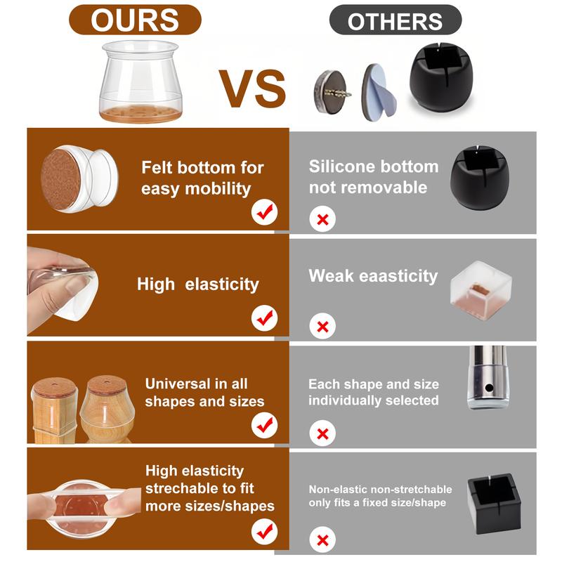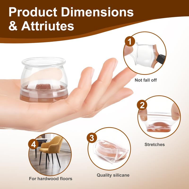 Unlike standard pads, these protectors fully envelop chair legs with thickened felt and flexible silicone, offering complete coverage even on angled legs. No exposed edges means no scratches!